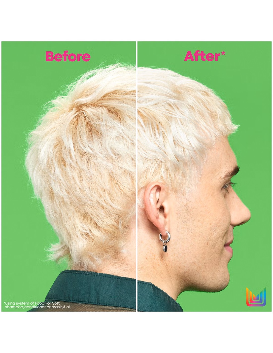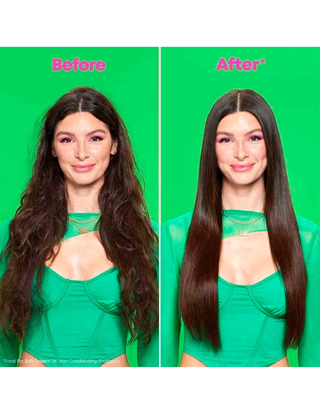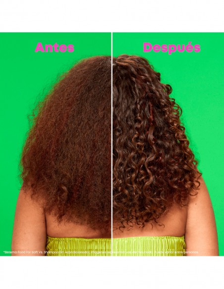 El Shampoo hidratante actúa sobre el cabello seco y lo transforma instantáneamente para lograr resultados suaves al tacto, proporcionando 7 veces más hidratación durante hasta 72 horas cuando se usa como un sistema de champú, acondicionador o mascarilla y aceite Food For Soft en comparación con un shampoo sin acondicionador.