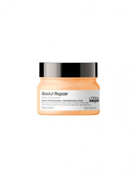 La mascarilla de reparación instantánea Absolut Repair ofrece la mejor experiencia profesional de reparación profunda para el cabello dañado y seco.